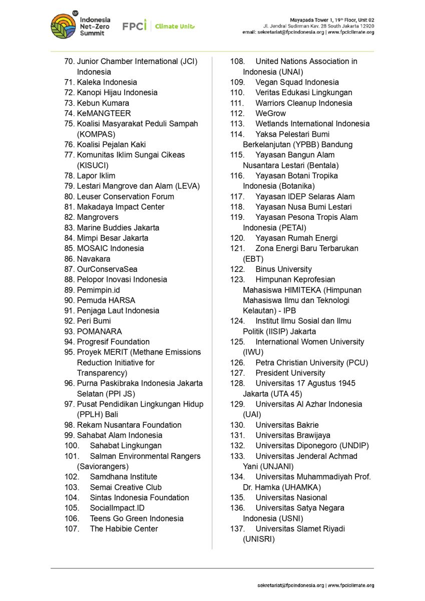 Oleh karena itu, kami mengusulkan agar net-zero tidak hanya menjadi target pemerintah, tetapi menjadi visi kolektif seluruh bangsa Indonesia. Net-zero harus menjadi agenda ekonomi, politik, dan pembangunan, serta bagian dari kebanggaan nasional.