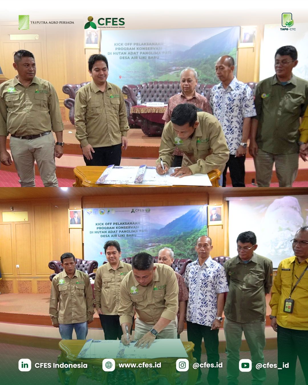 MERANGIN – PT Triputra Agro Persada Tbk (IDX:TAPG) bersama Community Forest Ecosystem Services (CFES) dengan Lembaga Pengelola Hutan Adat (LPHA) Panglima Pati meresmikan kerja sama pelaksanaan program konservasi jangka panjang untuk mendukung pengelolaan Hutan Adat Panglima Pati, Desa Air Liki Baru, Kabupaten Merangin, Jambi pada Kamis (29/8/2024). Kerja sama ini turut menandai Inisiasi perdana Triputra Agro Persada Group Commit To Conserve (TAPG-CTC) sebagai komitmen perusahaan melakukan konservasi lingkungan.