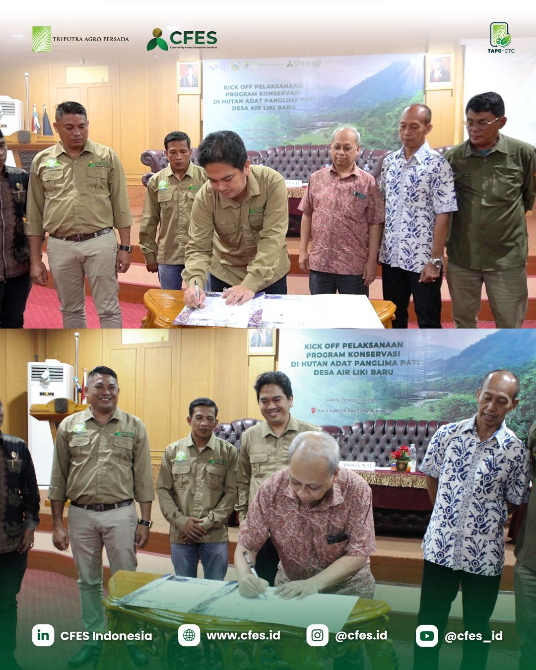 Peresmian kerja sama dilakukan dengan penandatanganan nota kesepahaman antara Sekretaris Dewan Eksekutif CFES Joseph Hutabarat dengan Ketua LPHA Panglima Pati Dihartoyo yang disaksikan oleh Deputy Director TAPG Widyantoko Sumarlin, Kepala Kesatuan Pengelola Hutan Merangin Rusnal, Kepala Desa Air Liki Baru Husni Syadri. Acara turut dihadiri oleh Asisten II Setda Merangin Suherman yang mewakili Bupati Merangin, Sekretaris Dinas Lingkungan Hidup Merangin Nana Supriyatna, Anggota DPRD Merangin As’ Ari El Wakas Apuk, S.H, perwakilan UPTD KLHK TN Kerinci Seblat Wilayah I M. Zainudin, S.P.